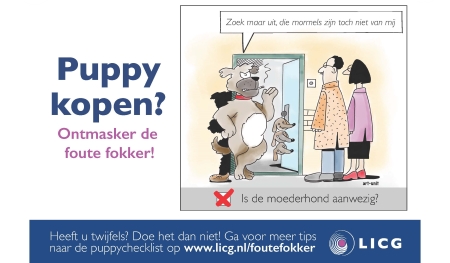 Helaas is het voor de consument moeilijk om het onderscheid te kunnen maken tussen fokkers die te goeder trouw zijn en de malafide fokkers. De campagne ‘ontmasker de foute fokker’ helpt daarbij. Met cartoons en animaties laat het LICG zien waar het mis kan gaan en waar een puppykoper op moet letten. Deze worden via social media en online verkoopkanalen verspreid. Basis van de campagne is de puppychecklist van het LICG, een handig hulpmiddel voor iedereen die een pup wil kopen.