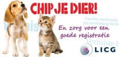 De volgende banners van de campagne "chip je dier" kun je gebruiken om op je eigen website te plaatsen. Klik met je rechtermuisknop op de afbeelding en selecteer "afbeelding opslaan als..". Je kunt de banner doorlinken naar https://www.chipjedier.nl